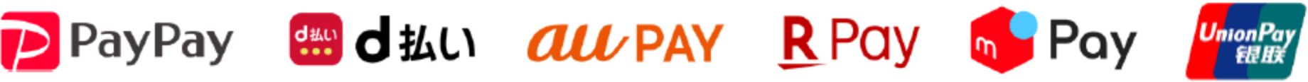 PayPay、d払い、au PAY、メルペイ、楽天ペイ、UnionPay(銀聯)がご利用いただけます。